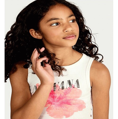 F&F Girls Pure Cotton Poodle Print Ruffle Top in Cream