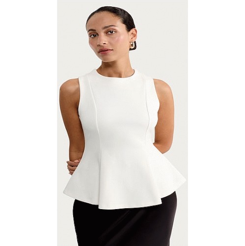 Ponte Peplum Hem Top in Cream