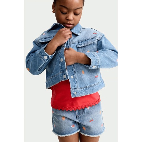 F&F Girls Pure Cotton Embroidered Shorts in Blue