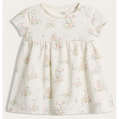 Cotton Rich Floral Print Reindeer Pocket Dress in Stone