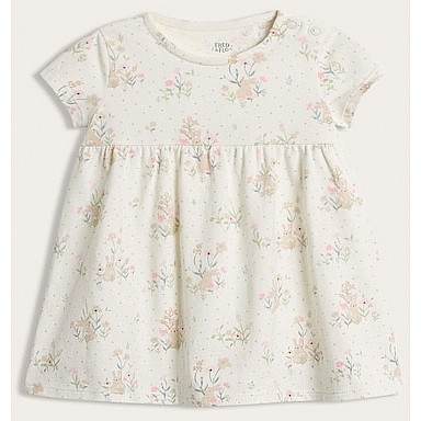 F&F Girls Cotton Rich Floral Print V Neck T-Shirt in White