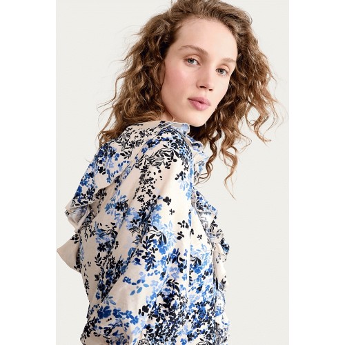 Floral Ruffle Detail Blouse in Multi Blue