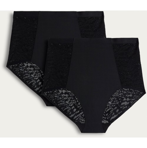 2-Pack Full Brief Lace Trim Knickers in Black