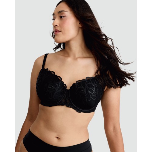 Fuller Bust Embroidered Wired Plunge Bra in Black