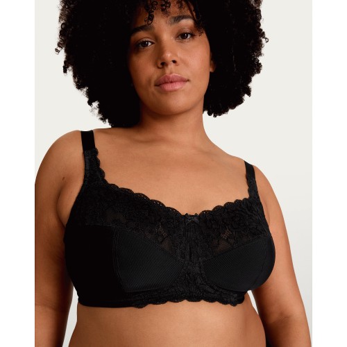 Fuller Bust Non Wire Lace Detail Bra in Black