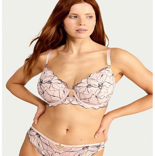 Fuller Bust Floral Lace Wired Plunge Bra in Multi