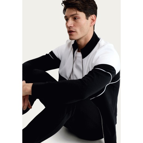 Colourblock Funnel Neck Zip Up Jacket in Black