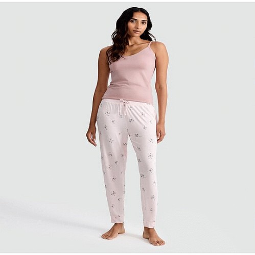 Snowflake Print Drawstring Pyjama Bottoms in Pink