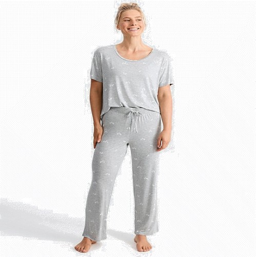 Tree Print Drawstring Pyjama Bottoms in Grey