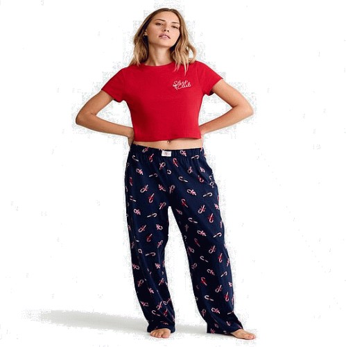 Pure Cotton Candy Cane Print Pyjama Bottoms in Navy