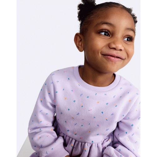 F&F Girls Floral Print Long Sleeved Sweat Dress in Lilac