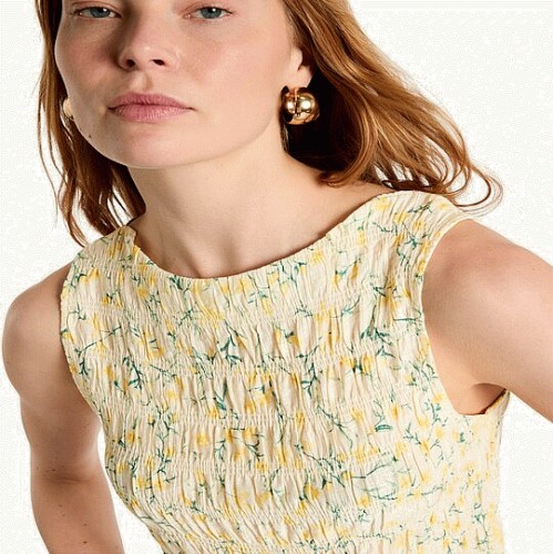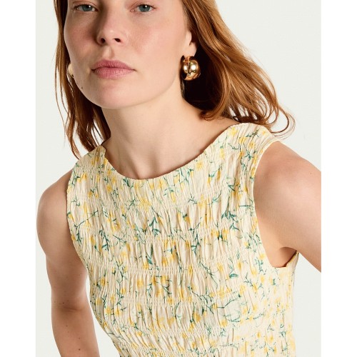 Lemon Shirred Sleeveless Blouse in Yellow