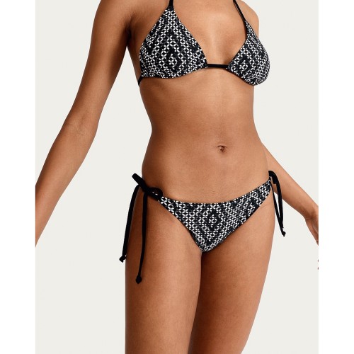 Geometric Print Tie Side Bikini Bottoms in Multi Black