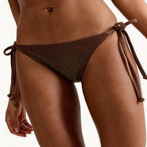Metallic High Leg Tie Side Bikini Bottoms in Bronze