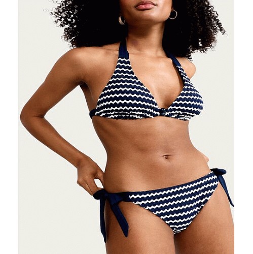 Wave Print Tie Side Bikini Bottoms in Navy