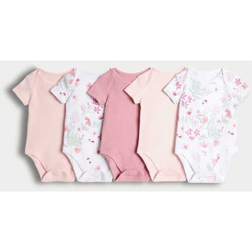 5-Pack Pure Cotton Floral Bodysuits in Pink
