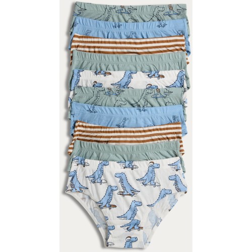 Boys 10-Pack Pure Cotton Dinosaur Print Briefs in Multi
