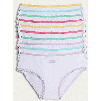 Girls 10-Pack Pure Cotton Contrast Trim Briefs in Multi