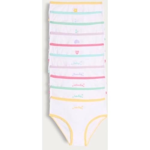 F&F Girls 10-Pack Pure Cotton Days of the Week Briefs in White