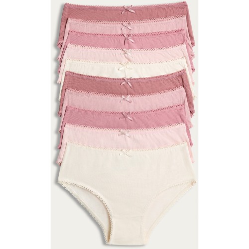 Girls 10-Pack Pure Cotton Briefs in Pink