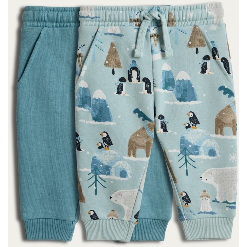2-Pack Cotton Rich Polar Animal Print Joggers in Turquoise