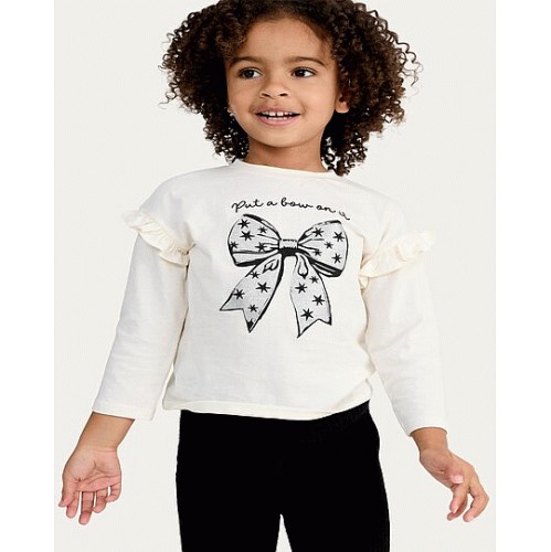 F&F Girls 2-Pack Pure Cotton Glitter Bow Long Sleeved Tops in Cream