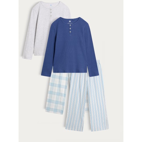 Girls 2-Pack Cotton Rich Henley Pyjama Sets in Blue