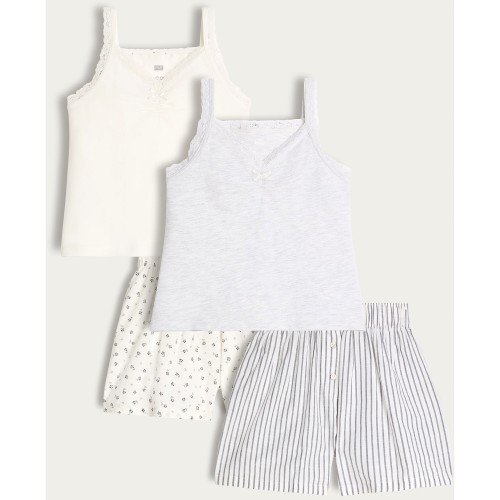Girls 2-Pack Cotton Rich Lace Trim Vest and Shorts Pyjama Sets in Multi