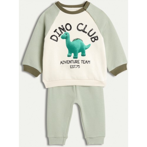 2-Piece Cotton Rich Dino Club Sweatshirt and Joggers Set in Multi