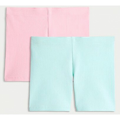 F&F Girls 2-Pack Cotton Rich Ribbed Cycling Shorts in Multi Pink