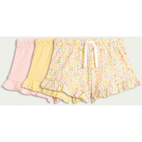 3-Pack Cotton Rich Ruffle Shorts in Yellow