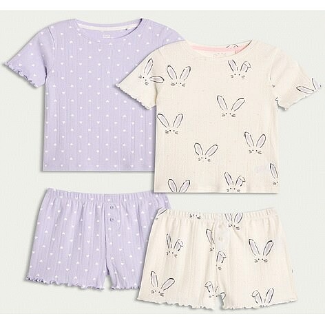 Girls 2-Pack Pure Cotton Bunny and Heart Print Pyjama Sets in Lilac