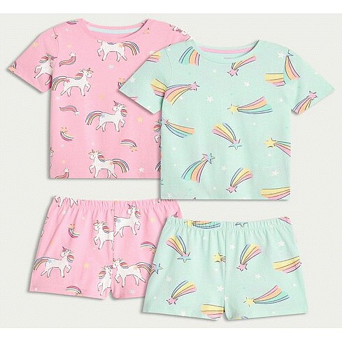 Girls 2-Pack Pure Cotton Unicorn and Rainbow Pyjama Sets in Mint