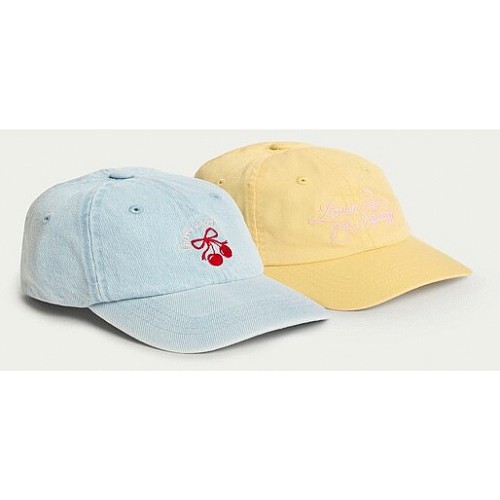 Girls 2-Pack Pure Cotton Embroidered Caps in Multi