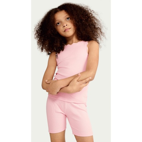 F&F Girls 2-Pack Cotton Rich Scallop Trim Vests in Multi Pink