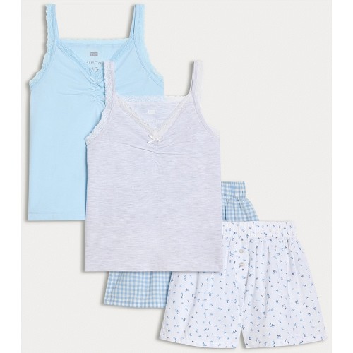 Girls 2-Pack Cotton Rich Lace Trim Vest and Shorts Pyjama Sets in Multi