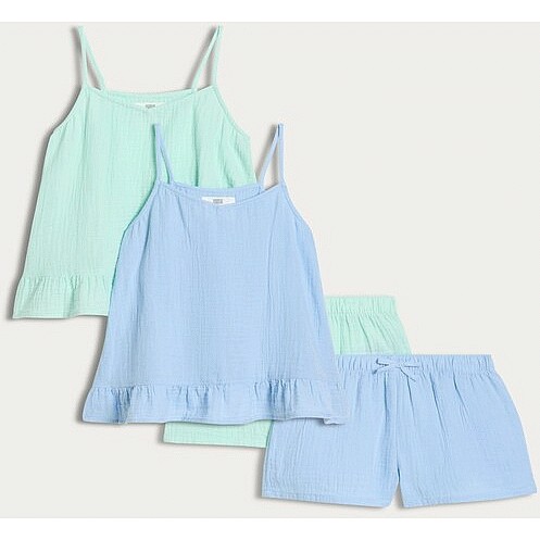 F&F Girls 2-Pack Pure Cotton Textured Pyjama Sets in Multi