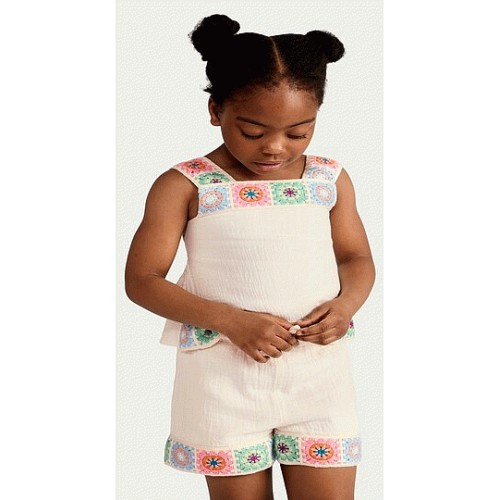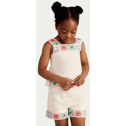 F&F Girls 2-Piece Pure Cotton Crochet Trim Top and Shorts Set in Cream