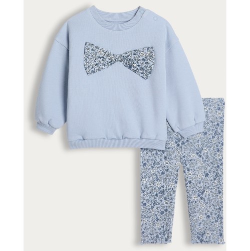 2-Piece Cotton Rich Floral Bow Sweatshirt and Leggings Set in Blue