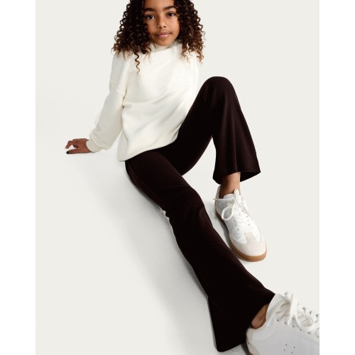 F&F Girls Cotton Rich Ribbed Flared Leggings in Brown