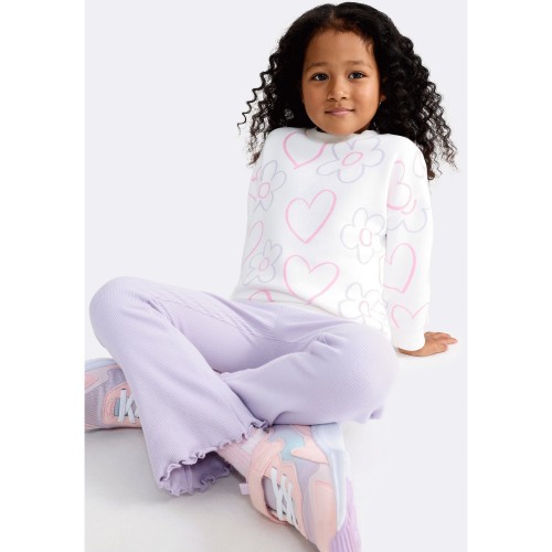 F&F Girls 2-Piece Cotton Rich Printed Sweatshirt and Leggings Set in Lilac