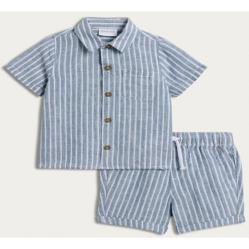 2-Piece Linen Rich Striped Shirt and Shorts in Blue