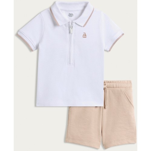 2-Piece Tipped Polo Shirt and Shorts Set in White