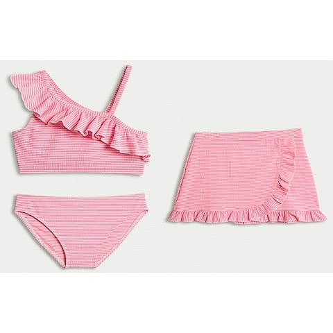 F&F Girls 3-Piece Ruffle Trim Swim Set in Pink