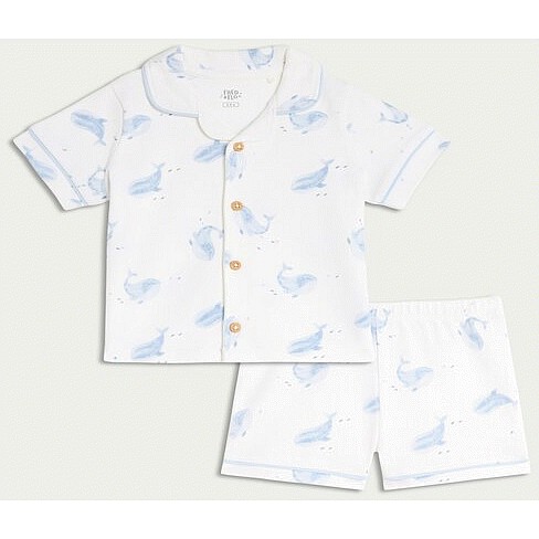 2-Piece Pure Cotton Whale Print Pyjama Set in White