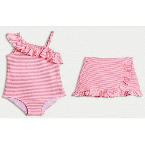 F&F Girls 2-Piece Striped Ruffle Trim Swim Set in Pink