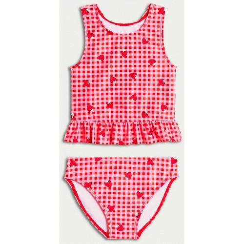 F&F Girls 2-Piece Gingham Strawberry Print Swim Set in Red