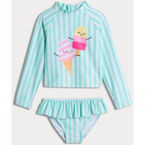 F&F Girls 2-Piece Ice Cream Print Striped Swim Set in Turquoise