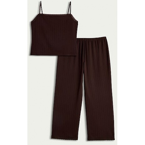 2-Piece Textured Lace Trim Pyjama Set in Cream