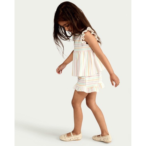 F&F Girls 2-Piece Striped Top and Shorts Set in Multi